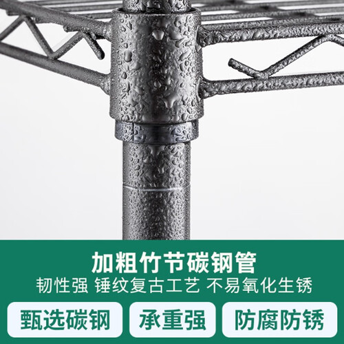 整体采用黑金花工艺,不仅具有时尚的外观,还能防腐防锈。加粗加密的网线,搭配三角力学设计,承重力更强,架子不易变形。