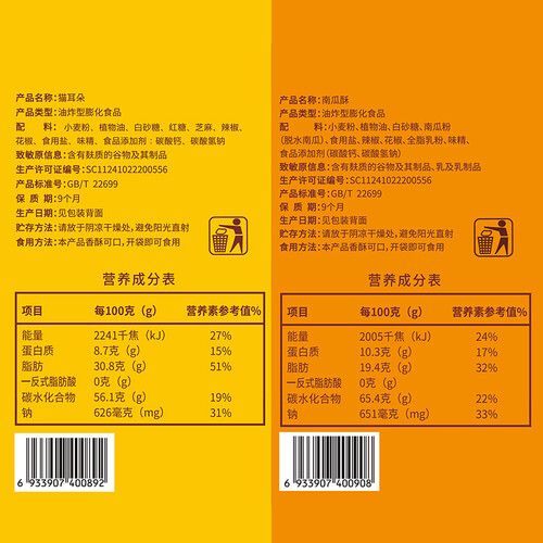 刺猬阿甘 南瓜酥猫耳朵休闲零食