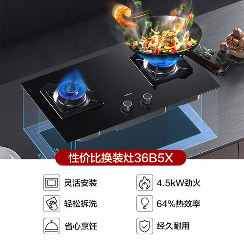 搭载三重供氧科技,有利于充分燃烧,猛火加热,降低能耗,符合一级能效标准。分体式燃烧器,可以进行深层清洁,污垢不残留。