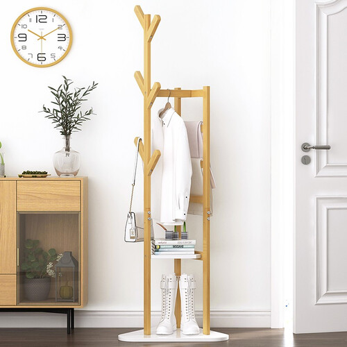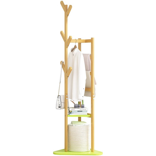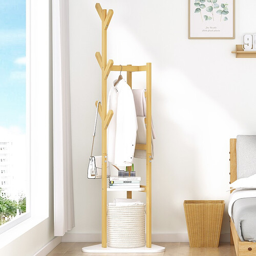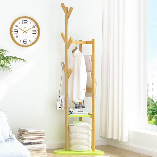 多功能衣帽架,不仅有挂钩可以悬挂衣物,还有置物台可以摆放物品,很实用。材质上采用的是高山上的楠竹,结实耐用。