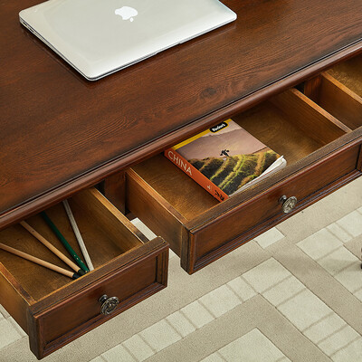 大方厚重设计,优选实木材质,精致工艺处理,桌面平坦顺滑,美观大方,大储物空间,收纳功能强大,精致拉手,彰显品质。