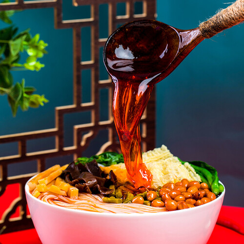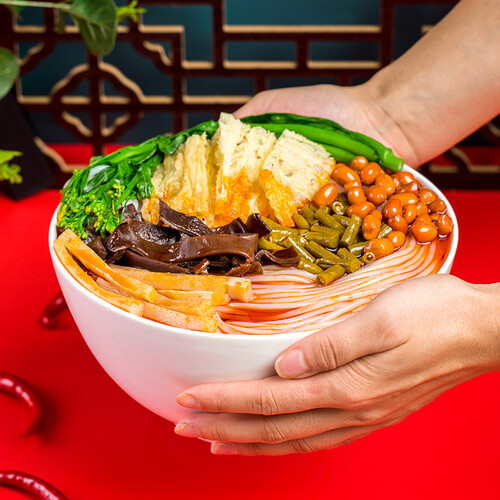 多种香辛料混合搭配,经过慢火熬制,将其中的香气完美绽放,制造出多样味道的口感。先进的磨浆制粉工艺,口感劲道爽滑。