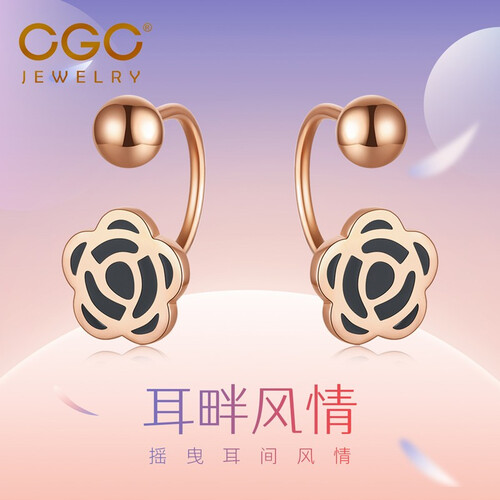 CGC 18K金玫瑰花耳钉