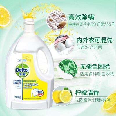 滴露清新柠檬除菌剂,可使洗完的衣物带有淡淡的柠檬果香,有效助您除去衣物中的霉味、汗味、异味等。