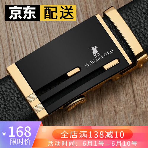 英皇保罗头层牛皮黑金皮带