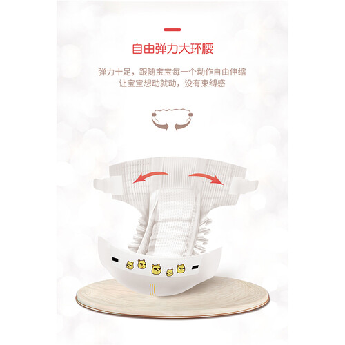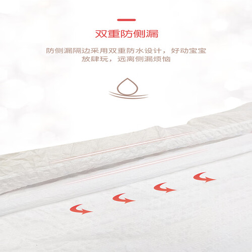 纸尿裤含棉量高,触感柔软丝滑,能呵护宝宝娇嫩的小屁屁。纤薄的吸水芯体,反渗率较低,能够紧紧锁住尿液。