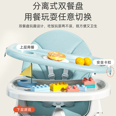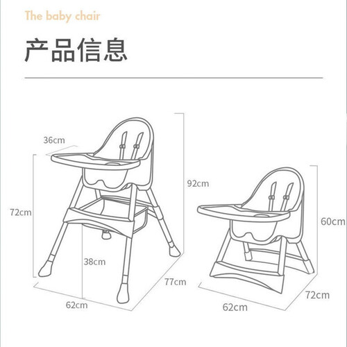 座椅高度可调高低,大孩子小宝宝都能用,陪伴宝宝成长。三点式安全卡扣,可固定孩子与餐椅上,防止宝宝跌倒摔跤。