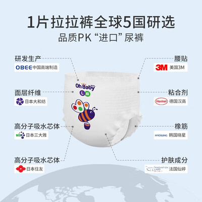 专为宝宝脆弱敏感性肌肤设计,舒爽透气穿着不闷热,还融入法国益生元成分,给屁屁做好安全防护避免感染。