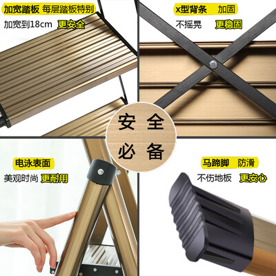 这款家用梯子采用加宽加深防滑踏板,可有效提高承重力的同时也有效防滑,每一个阶梯踏板都给足你安全感,上下更安心。