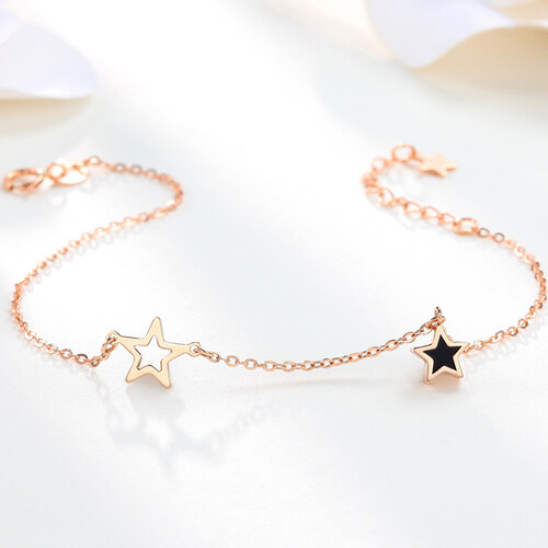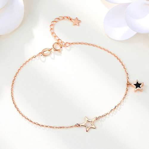 尾链可调的K金手链,佩带舒适易调节,采用优质的K金材质,暖暖的玫瑰金色,光亮持久不脱色,还配有撞色的小星星,活泼减龄。