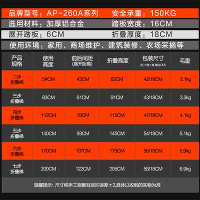 奥鹏铝合金家用折叠四步梯