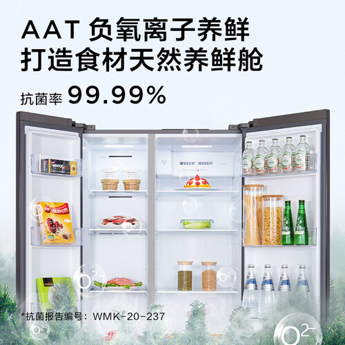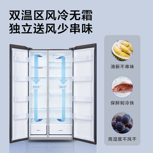 515L对开门大容量,科学合理分区,食材精细存储不串味。高密度发泡层,锁住冷气不外漏,减少电能损耗。