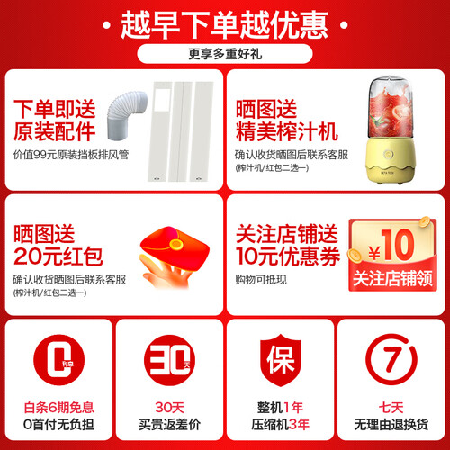 免安装的设计,很适合不便安装室外机的场所使用,使用便捷令你尽享清凉,搭配低音运行技术,不易打扰家人睡眠。