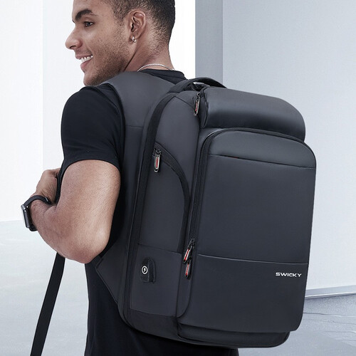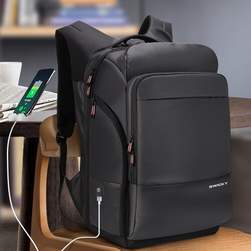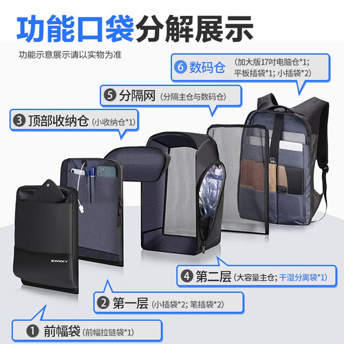 180°开口设计,一体箱式结构,拿取方便;S型肩带设计,符合人体工程学,缓解肩部压力;锖色双拉链设计,拉合顺滑。
