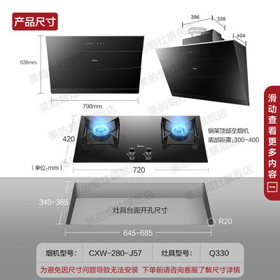美的 侧吸直排触控面板油烟机