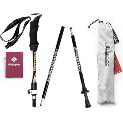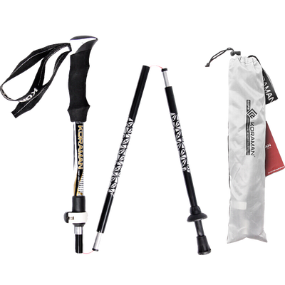 便携登山杖采用轻巧的碳素材质,搭配铝合金杖杆,具有高强硬特性,钢丝链接很大程度的提高了安全性和牢固性。