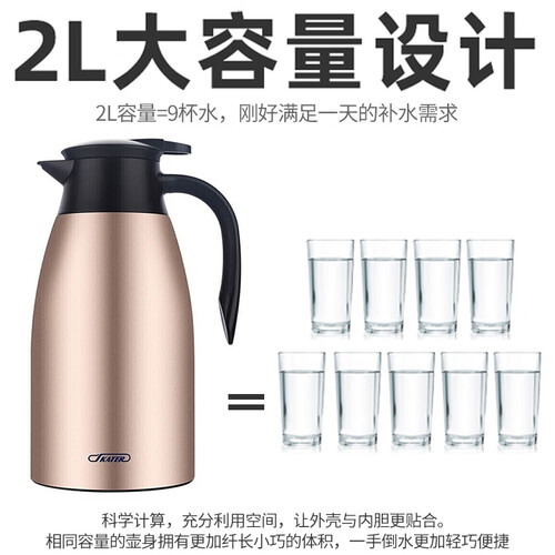 采用2L大容量设计,无需频繁的倒水,特别贴心。结合动感的流线型外观,握感特别舒服,而且倒水的时候很轻松。