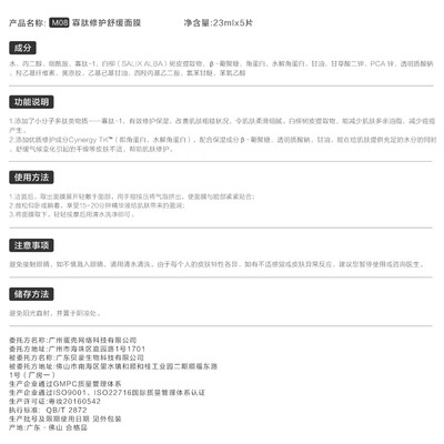 面膜内富含的寡肽成分,四步修护皮肤。核心的寡肽修护成分,能够改善敏感的痘痘肌,修护肌肤屏障,舒缓敏感。