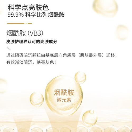 蕴含烟酰胺精粹,滋润养肤改善暗沉无光,提升个人好气色。水漾质地,可轻松打开肌肤吸收通道,促进后续护肤品的使用。