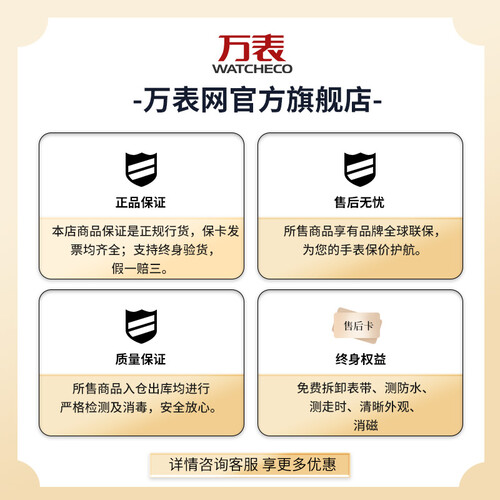 优质自动机械驱动,无需反复校时,使用更加方便。搭载钢制腕带表壳,有效防潮防尘,延长使用寿命长。