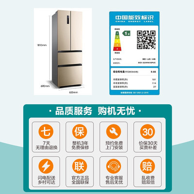322升容积能够容纳更多食材,法式多门结构美观时尚,能够更加科学的分类保鲜。支持深冷速冻,快速锁住食材鲜味。