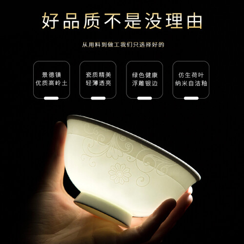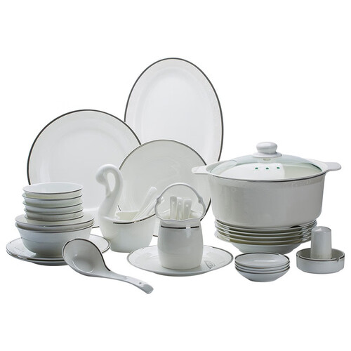 这套餐具采用了铂银镶边技艺,描边带来的视觉优雅体验,搭配浮雕带来的触摸质感,瓷质通透,让生活充满品味。