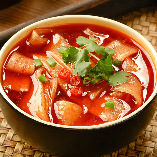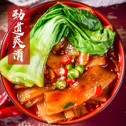 采用了红薯粉制作,粉质细腻,顺滑爽口,入口有嚼劲。搭配上麻辣香料,口感麻辣鲜香,滋味醇厚入口唇齿留香。
