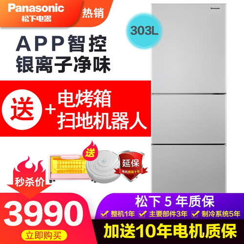 松下 风冷抗菌除味三门冰箱