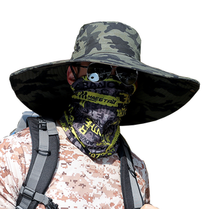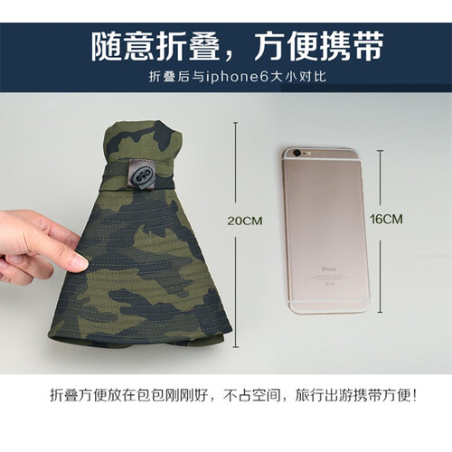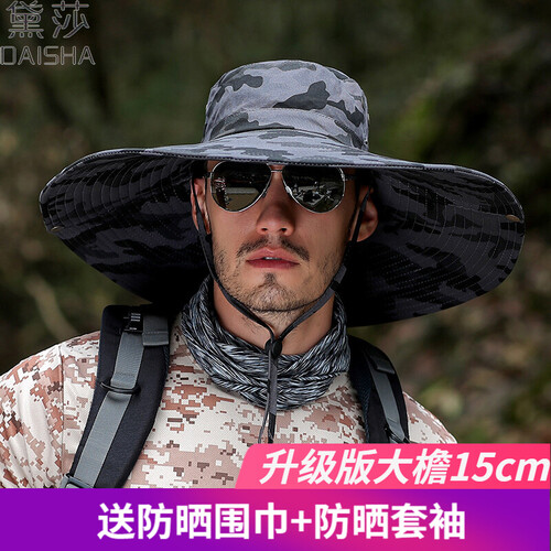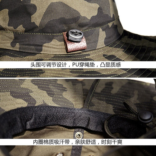 涤纶材质的迷彩宽檐遮阳帽,质地厚实,带来更加出色的遮阳效果。加持固定防风绳,更好的固定遮阳帽,有效防风不必担心帽子掉落。