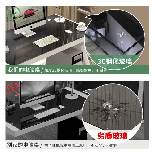 实用的电脑桌可用来办公学习以及娱乐,桌面采用加厚钢化玻璃制作,耐磨耐用。
