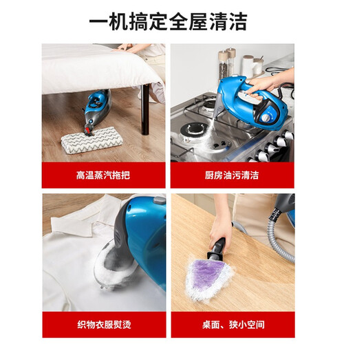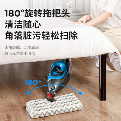 采用180度旋转的拖把头,可轻松探入家居缝隙和床底,彻底清洁无残留。干湿两用设计,快速产生丰富蒸汽,溶解污渍方便拖地。