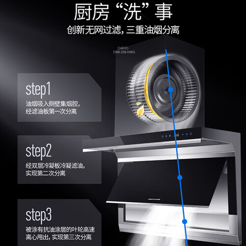 采用低空全净吸设计,为您的身体健康保驾护航,从头到脚都不再触碰油烟。搭载七扇旋火,保障食材受热均匀,口感更佳。