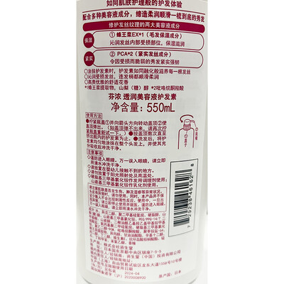 水源净活成分,净化水源本身对头发的侵蚀,深度滋养发丝头皮有效控油,令秀发清爽飘逸。多效凝水修护成分,为发丝保湿锁水。