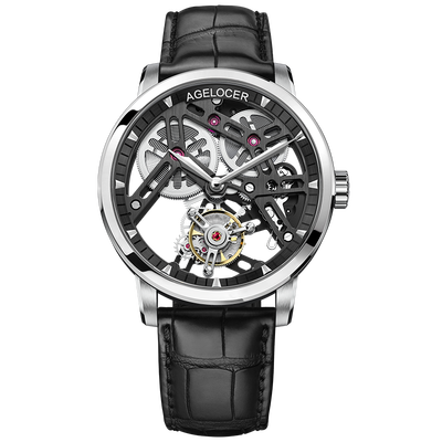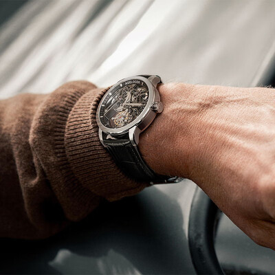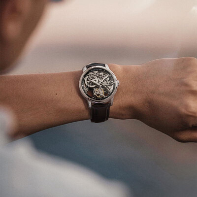采用镂空飞行陀飞轮造型,立体时尚走时更准确,查看时间更加方便。采用避震系统,整体通透,给你一个机械时尚的腕上空间。