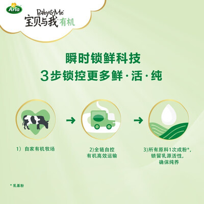 有机牧场尊重自然生长规律,执行统一的有机标准,更安全可靠。原装原罐出厂,无二次分装,只为给宝宝全面呵护。
