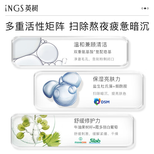 洁面乳采用肌肽的配方,为肌肤注入了修复能量,结合牛油果成分,保持水润弹性。添加丹参成分,对抗暗沉。