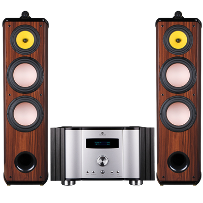 独具魅力的箱体设计,辅之以酸枝木皮,更显高端,更上档次,端庄而富有复古韵味。铝镁合金低音,现场感更强。