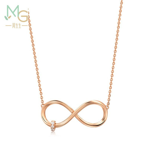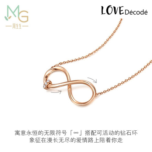 无穷符号造型吊坠,线条流畅顺滑,款式简约别致。加以缀有钻石的小圆环点缀,瞬间提升了整体造型的时尚感,璀璨吸睛。
