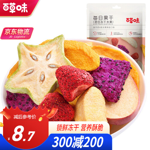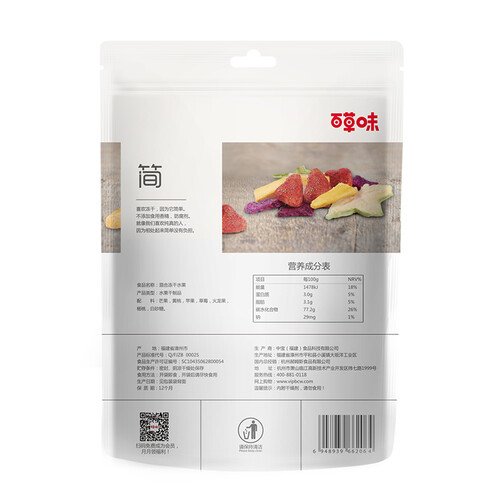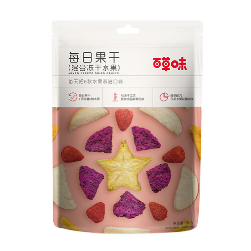 保留了水果更多本有的味和营养,先进冻干技术,每一包精选搭配科学配比。优质产地的新鲜水果,水果也能脆着吃。