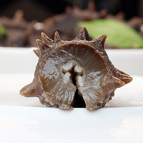 低温水域中生长,体型饱满肥大,参刺完整挺拔品质出众。质地弹韧柔嫩,对折不易出现断裂,鲜嫩白皙的肉质更加脆嫩爽口。