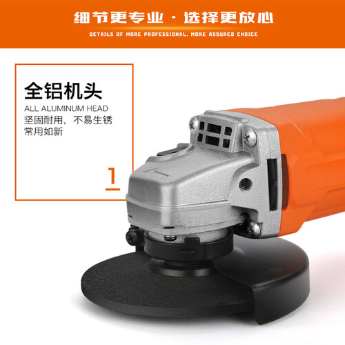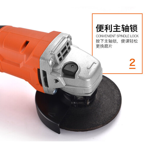 全铝机头,坚固耐用,不易生锈,常用如新,便利主轴锁,可轻松更换磨片,防爆裂护罩,优质材料,作业时有保障。