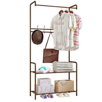 可悬挂又能摆放的衣帽架,可利用空间多,真正的一架多用,实用性高。铁艺的固定挂钩,结实不易掉落,使用时间长。