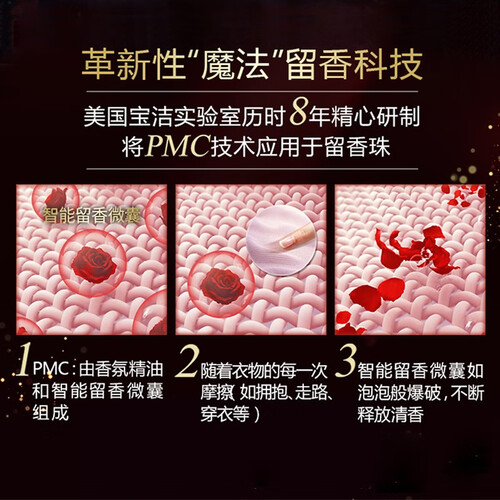 贴心设计守护衣物柔软,均匀渗透到衣物纤维上呵护衣物。采用革新性“魔法”留香科技,研制智能留香微囊,不断释放清香。