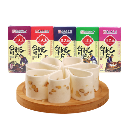 精选的糯米与核桃、黑芝麻制作,桃片的味道醇厚,绵软好吃。多口味的制作方式,吃起来均带着不一样的好味道。