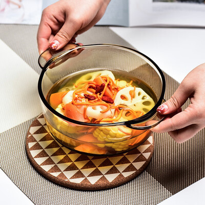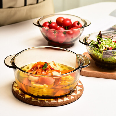 甄选钠钙玻璃材质打造,厚实透亮,不含重金属,让你使用放心;带有双耳提手,有效隔绝碗内热量,让你端拿轻松。