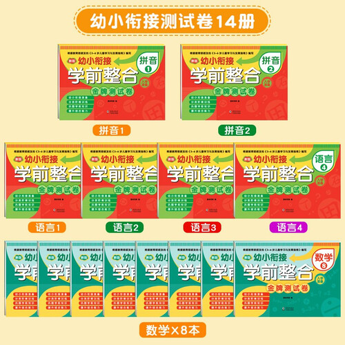 幼小衔接学前测试套装,包括拼音、语言、数学,测出宝宝的薄弱点,为小学入学做有效的准备。