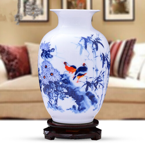 它来自千年瓷都景德镇,表面印有马到成功,寓意深厚,整体彰显着传统东方的美。当光线照射,会透过花瓶内部,更显晶莹剔透之感。