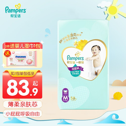 便捷裤型设计,孩子配合度更高,轻松穿脱,随意玩耍不易位移,使用省时又安全。搭载三条吸收通道,快速均匀吸尿。