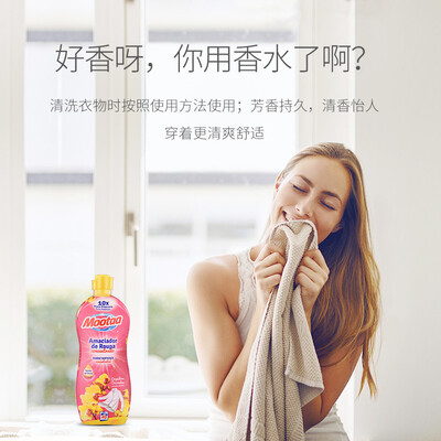 含浓缩衣物柔软剂,一小瓶盖,可护理9斤衣物,普通衣物护理后也能柔顺丝滑感;同时还能令衣物轻松熨烫,不易变形。