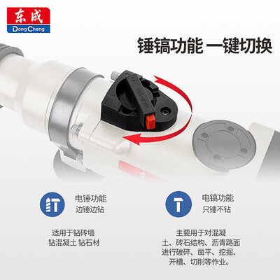 两用的设计很实用,电锤钻孔电镐开槽轻松满足多种使用需求。搭载电机防护装置,使用时防止颗粒杂物进入保护电机。